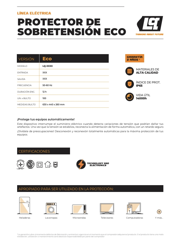 No arriesgues la seguridad de tus dispositivos eléctricos! Con el Protector de Sobretensión Eco Lusqtoff Electric, asegurás una defensa confiable contra daños eléctricos, ideal para hogares, oficinas y pequeños comercios.